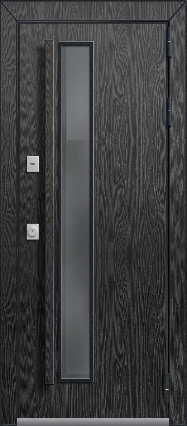 В конструкции двери Т-5 Премиум используется двухкамерный стеклопакет толщиной 48 мм. Стекло цвета Грей с низкоэмиссионным энергосберегающим покрытием, сохраняет тепло внутри дома и практически исключает теплопотери. Также стоит отметить тяговую ручку. Механизм открывания, встроенный в ручку, - собственная разработка завода Центурион.Снаружи установлена панель МДФ в металлической окантовке, что в сочетании с остеклением делаем дверь Т-5 Премиум запоминающейся и уникальной