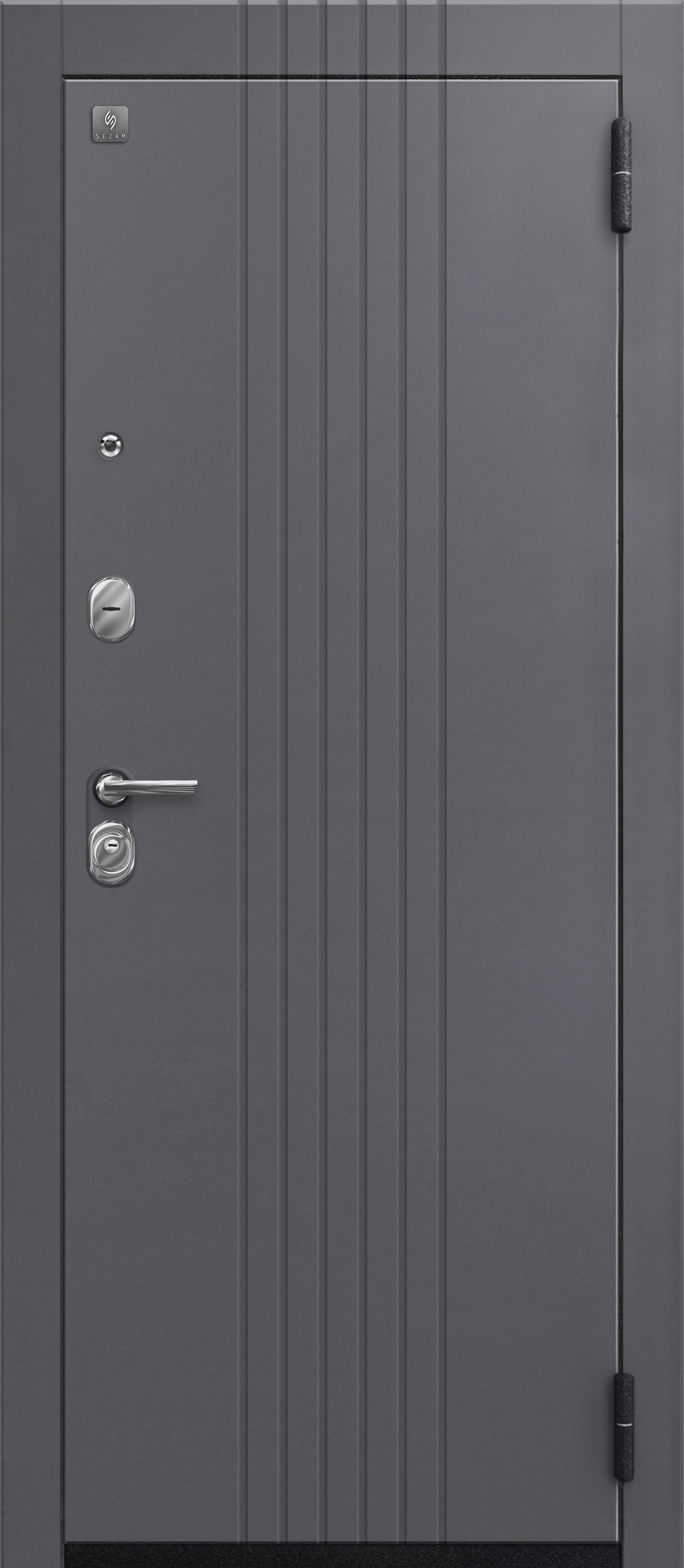 Два контура уплотнения с трехкамерным уплотнителем надежно защищают от сквозняков и посторонних запахов. Замки Sezam 103 и 102 в сочетании с эксцентриком (регулятором притвора), цилиндрами (ключ-вертушка и ключ-ключ) и броненакладкой на цилиндр обеспечивают высокий уровень защиты от несанкционированного проникновения. Дополнительная ночная задвижка повышает безопасность, а раздельная ручка и глазок добавляют удобства в использовании. Противосъемные штыри и две петли обеспечивают дополнительную защиту от взлома.
