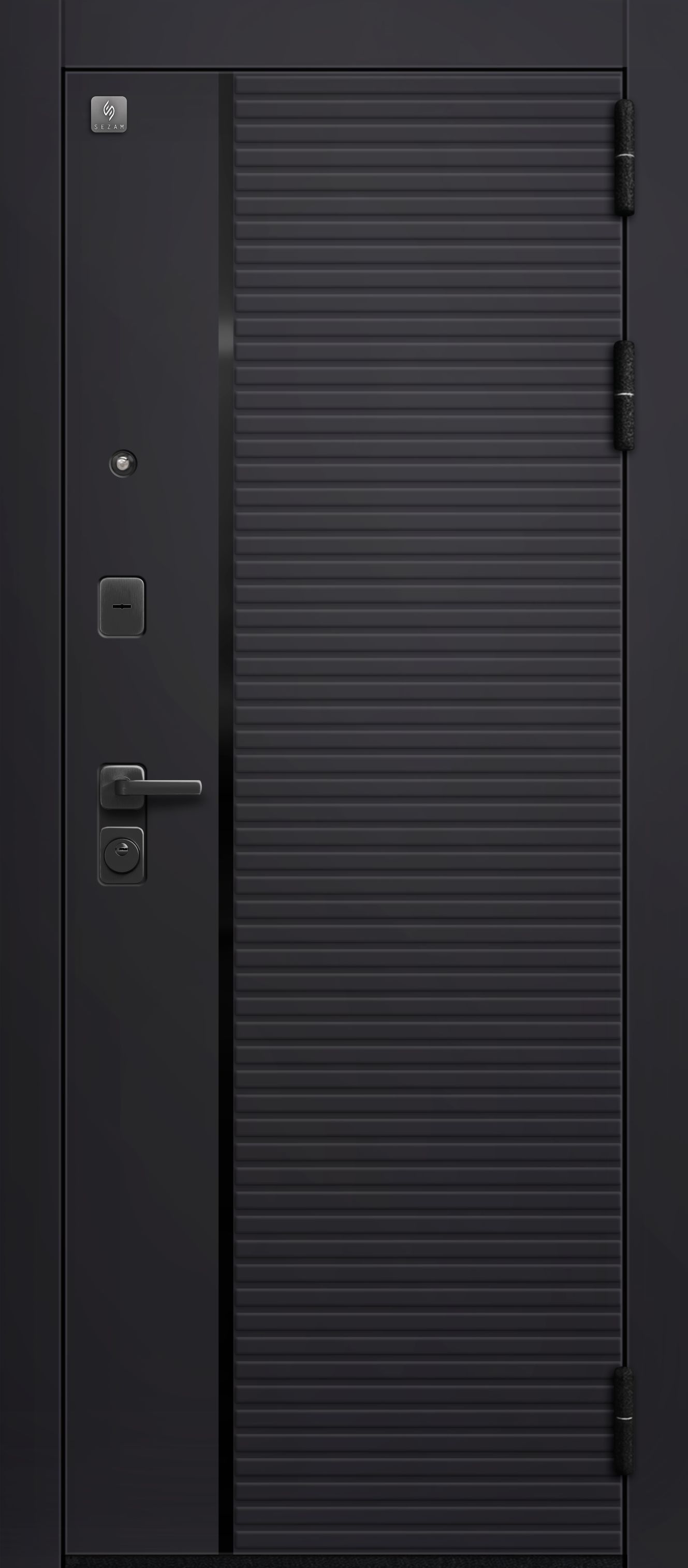 Замки двух типов закрывания – сувальдный Sezam 103 3 класса, и цилиндровый Sezam 102, 4 класса обеспечивают надежную защиту. Также вскрытию воспрепятствуют 3 противосъемных штыря со стороны петель.