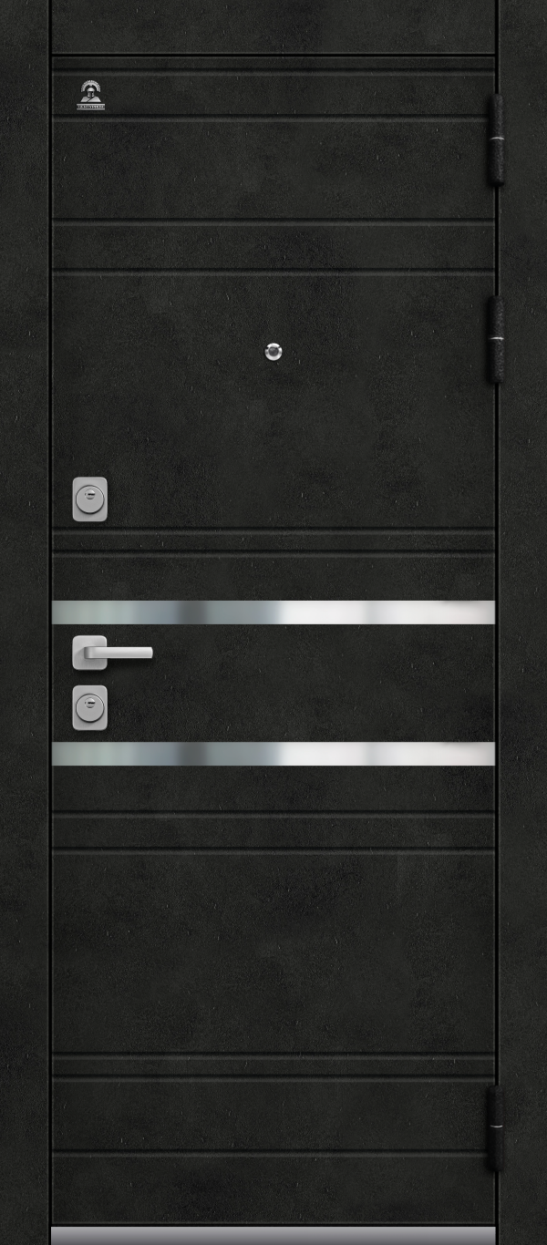 Данная модель имеет внешнюю дизайнерскую панель, скомбинированную с нержавеющими молдингами. Внутренняя панель представлена в двух вариантах цветов – Кашемир сильвер и Кашемир авкаЭлементы декоративных металлических молдингов на внешней и внутренней панели, придают двери стильный и современный вид, а горизонтальные линии фрезеровки оригинально дополняют данную модель.