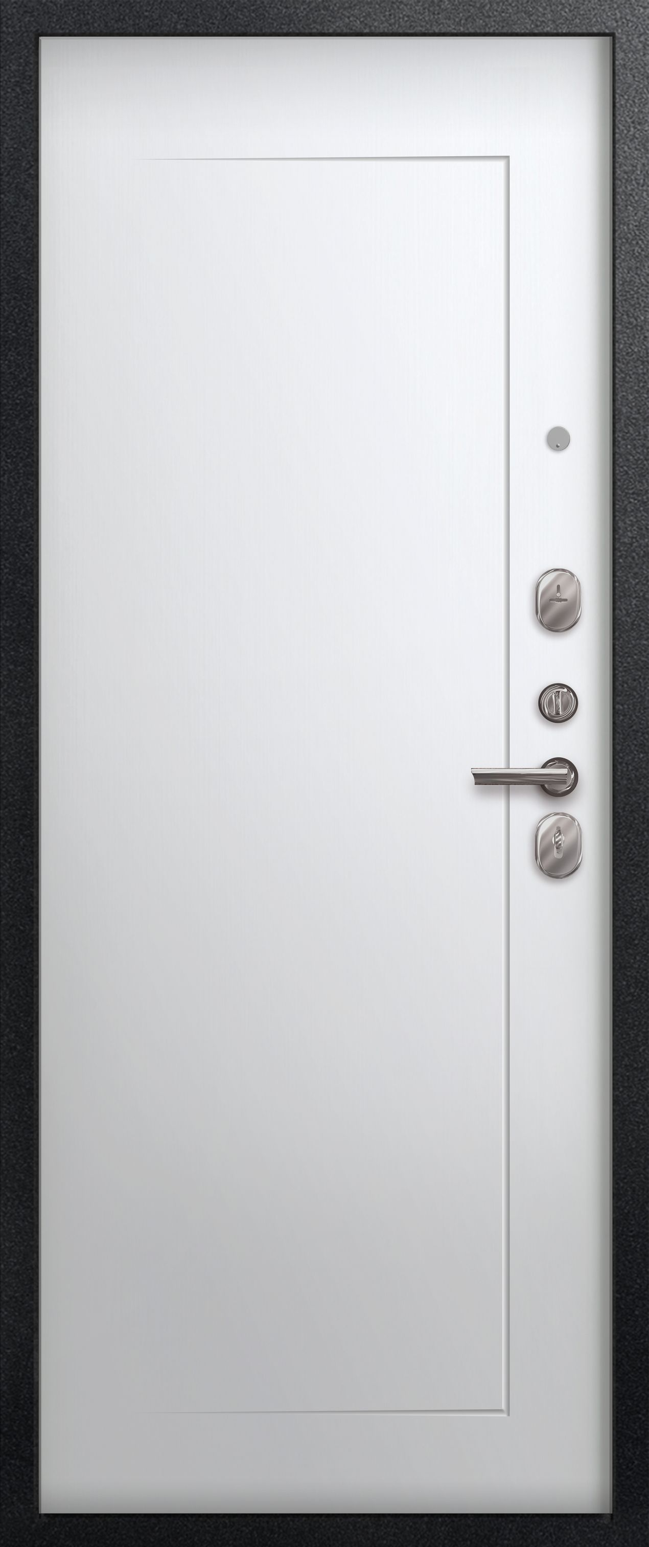 Три контура уплотнения защищают квартиру от постороннего шума и сквозняков. Сталь толщиной 1 мм обеспечивает достаточную прочность при умеренной массе готового изделия. Для обеспечения дополнительной жесткости конструкции используется технологический вертикальный гиб(штамп) с внешней стороны полотна. Наполнитель двери – пенополистирол.
